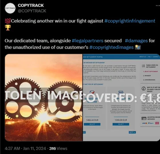 Another client of Copytrack posted this in their review of the program: