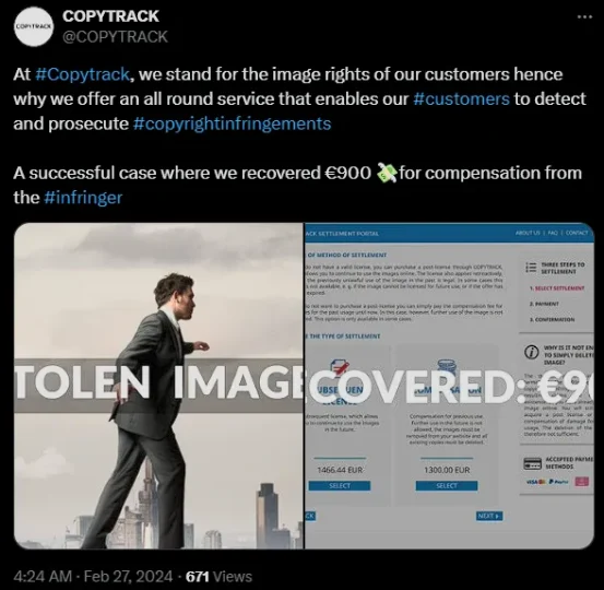 - Were these images commercially successful for the defendants? In most cases, I don’t see traffic metrics that validate the costs of what Copytrack tries to claim.